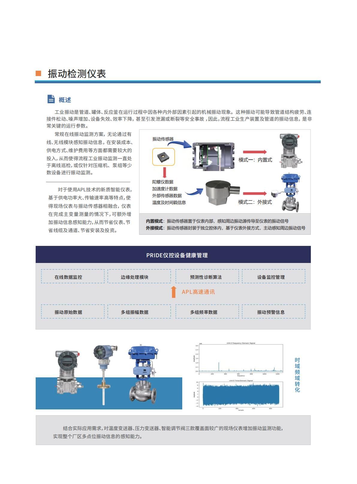 对于使用apl技术的新质智能仪表,基于供电功率大、传输速率高等特点,使得现场仪表与振动传感器相融合, 仪表在完成主变量测量的情况下,可额外增加振动信息感知能力,从而节省仪表、节省线缆及通道、节省安装及投资。